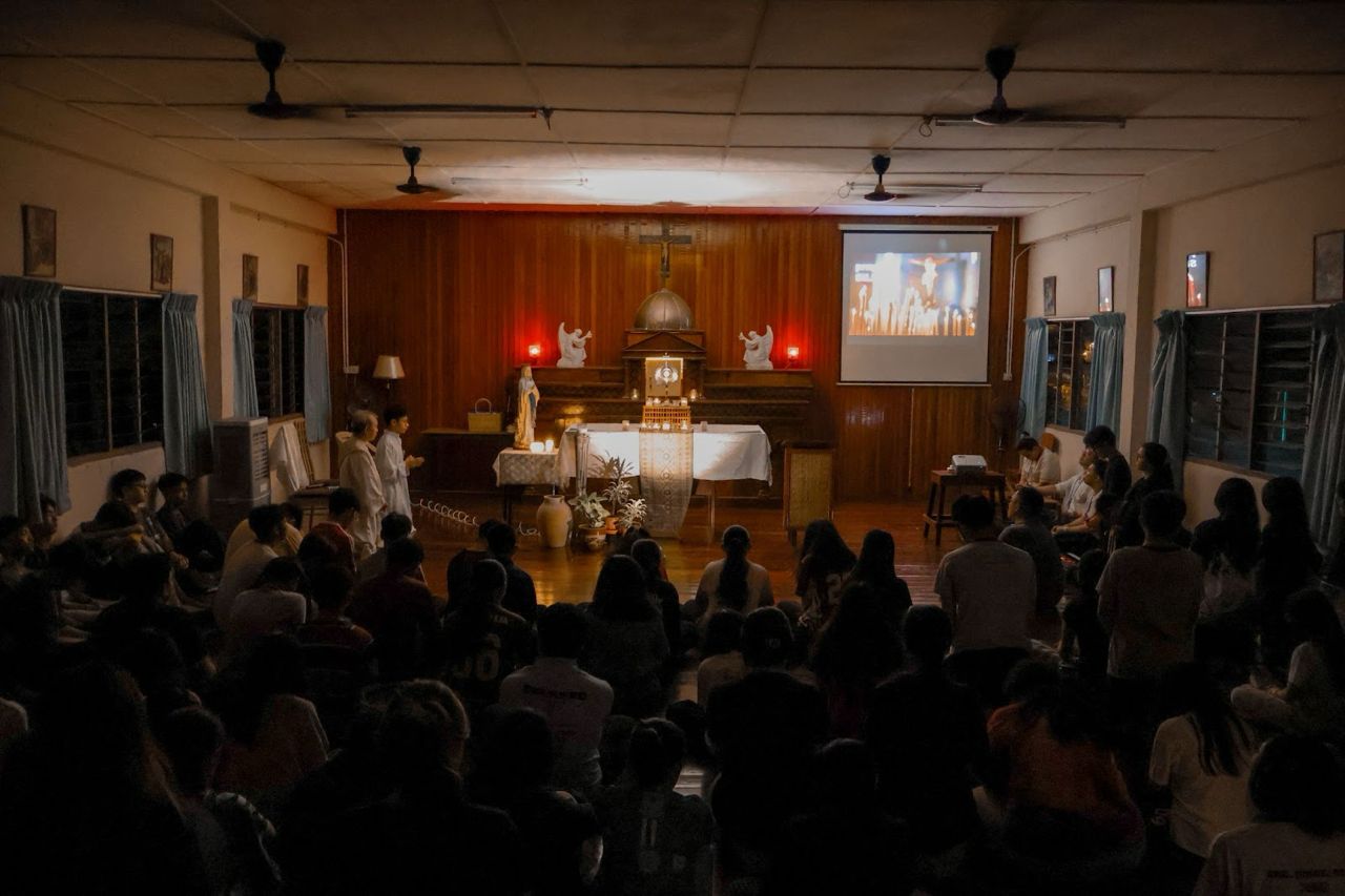 Figure 4. Everyone gathered to pray in the chapel during “Holy Hour”.
